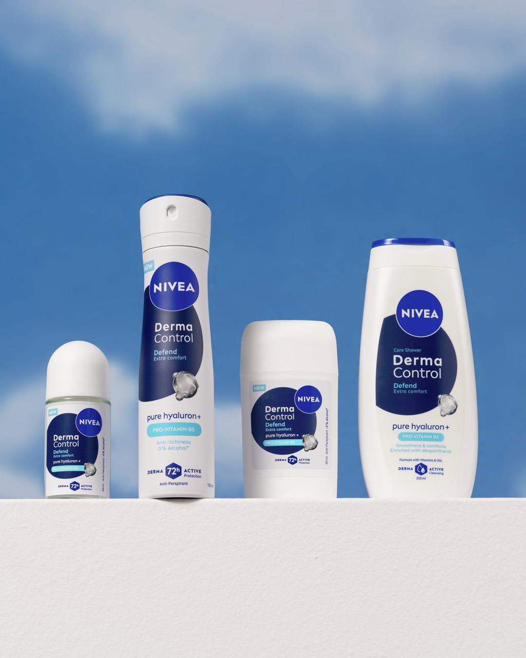 NIVEA Derma Control Restore: Η σειρά NIVEA Derma Control Restore, με Pure Hyaluron και Βιταμίνη Ε, καταπραΰνει το ερεθισμένο δέρμα μετά το ξύρισμα. Τα αντιιδρωτικά προσφέρουν 72ωρη προστασία από ιδρώτα και οσμή, ενώ αφήνουν τις μασχάλες πιο απαλές και όμορφες, με υγιή αίσθηση. Για ευαίσθητη επιδερμίδα, με υποαλλεργικό άρωμα.