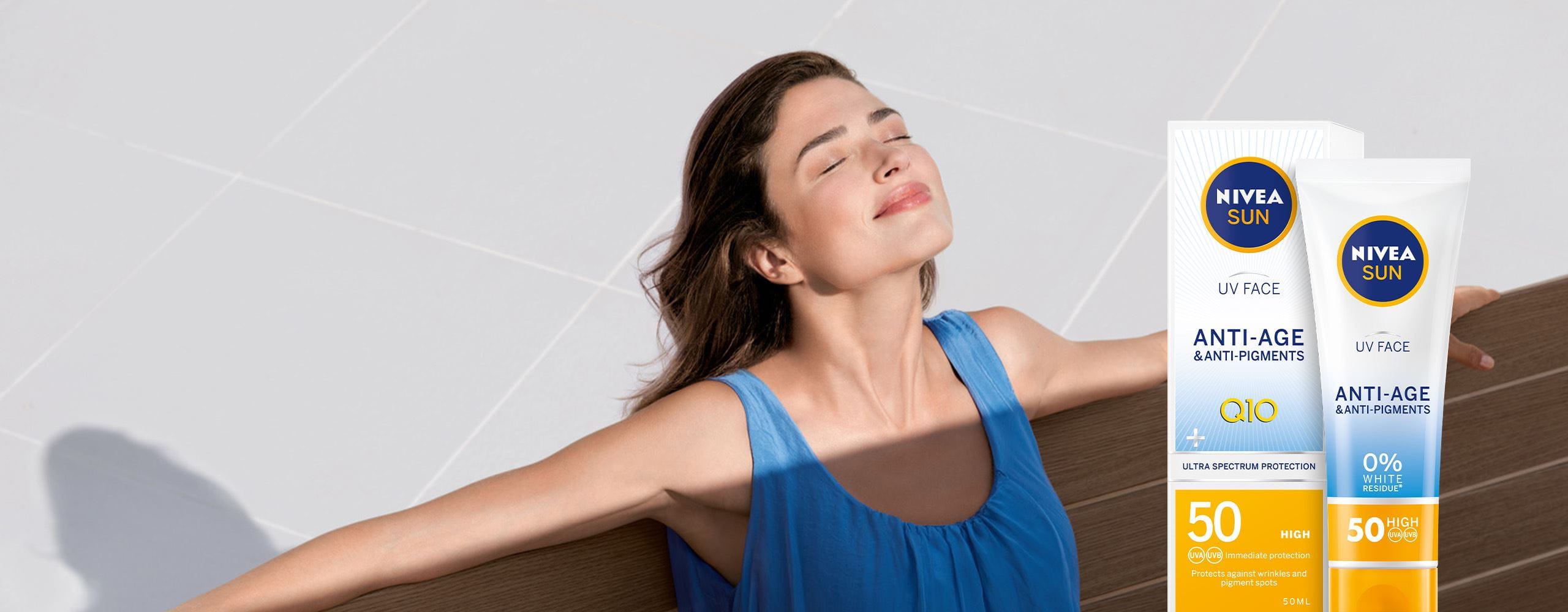 Με τη νέα σειρά NIVEA SUN UV Face με Ultra Spectrum Protection, η NIVEA SUN προσφέρει ένα αντηλιακό που με τη σύνθεσή του υπερβαίνει τη συνηθισμένη αντηλιακή προστασία. Είτε έχεις λιπαρή, είτε ευαίσθητη επιδερμίδα ή απλά θέλεις να εμποδίσεις τις χρωματικές κηλίδες: ανάλογα με τις ξεχωριστές ανάγκες της δικής σου επιδερμίδας, μπορείς να επιλέξεις ανάμεσα σε τέσσερα διαφορετικά προϊόντα - για αξιόπιστη προστασία και μια ανάλαφρη αίσθηση στην επιδερμίδα.
