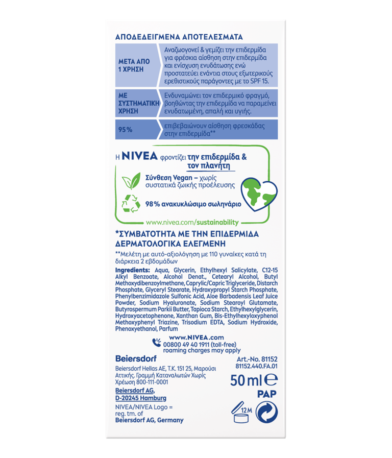 Επειδή η επιδερμίδα είναι ζωντανή, η NIVEA αναπτύσσει προϊόντα που υποστηρίζουν τη βιολογία της επιδερμίδας με εξαιρετικά αποτελεσματικό τρόπο – για να δείχνετε και να αισθάνεστε στα καλύτερα σας. Δοκιμάστε αυτή την πρωινή περιποίηση για κανονική επιδερμίδα | 50ml