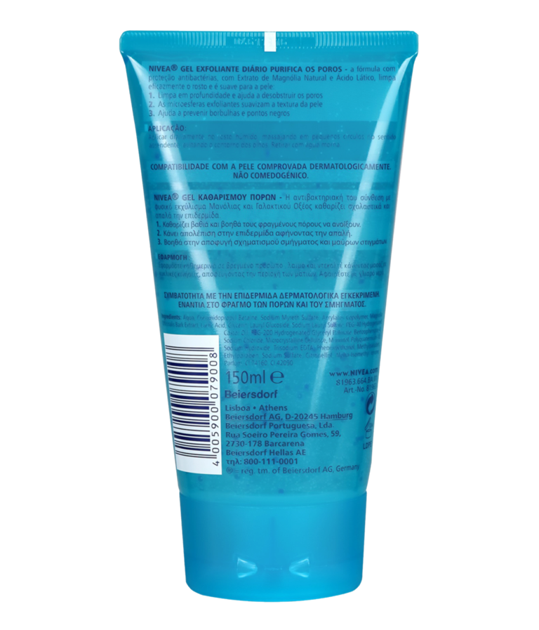 Το Καθημερινό Gel Καθαρισμού Πόρων της NIVEA® είναι κατάλληλο ακόμα και για ευαίσθητες επιδερμίδες . Βοηθά στη βελτίωση της όψης της επιδερμίδας σας καθώς και στην καταπολέμηση και την πρόληψη των μαύρων στιγμάτων. Η αντιβακτηριακή φόρμουλα καθαρίζει αποτελεσματικά την επιδερμίδα.