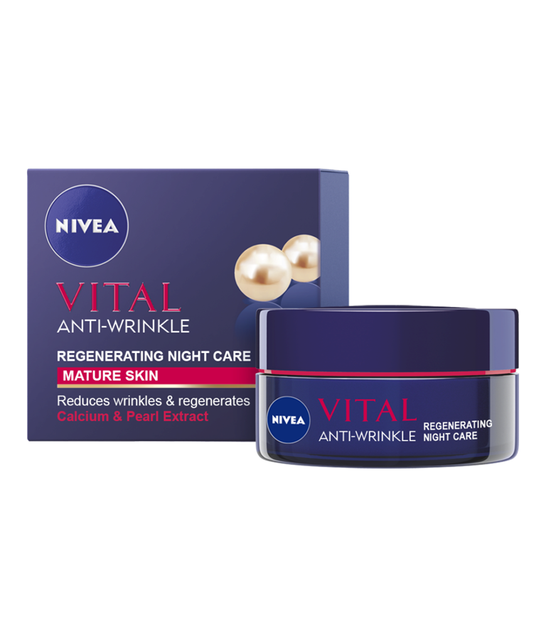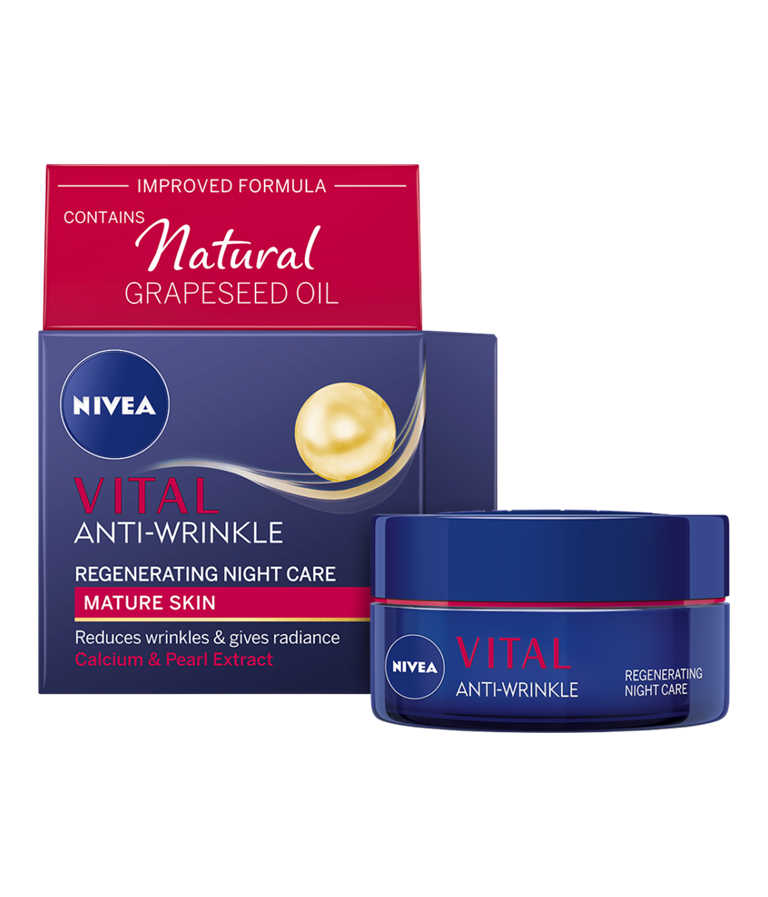 Μειώνει τις ρυτίδες, γεμίζει και αναπλάθει την επιδερμίδα κατά τη διάρκεια της νύχτας: Κρέμα Νύχτας VITAL για Αναδόμηση.