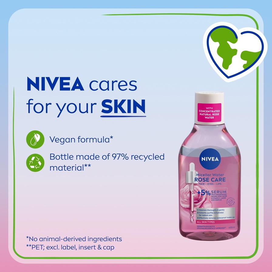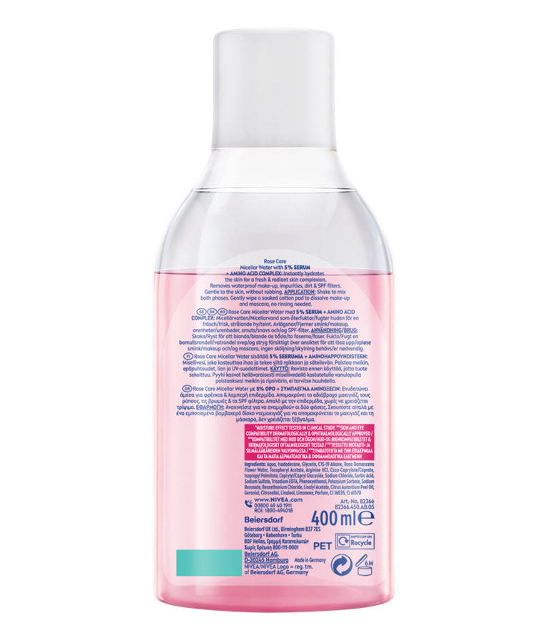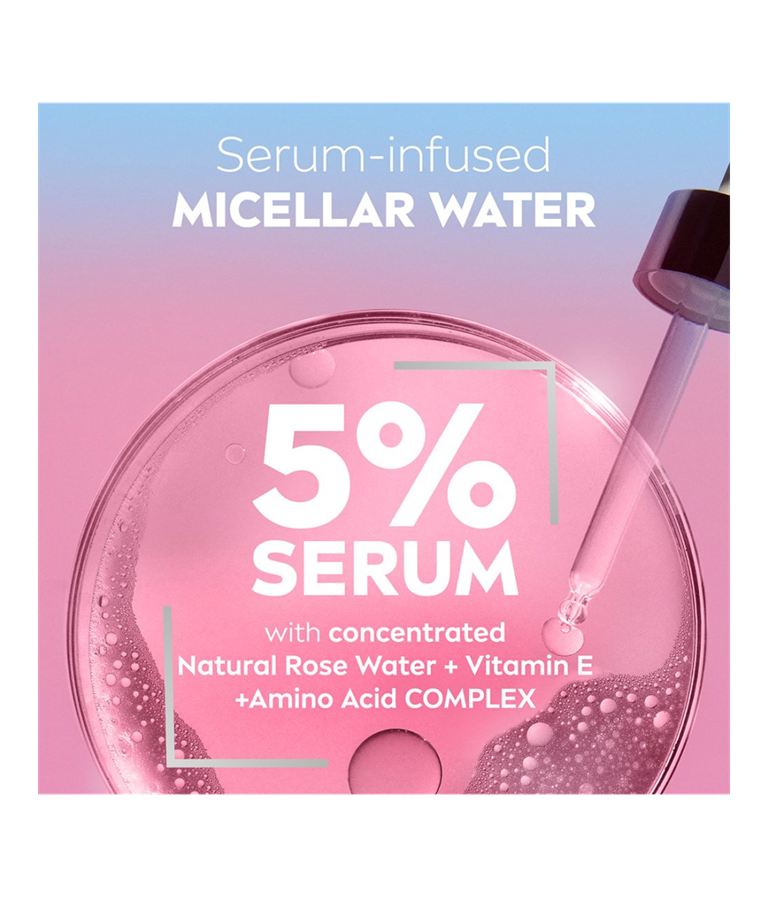 Απολαύστε ενυδατωμένη, καθαρή επιδερμίδα με 5% Ορό εμπλουτισμένο με συμπυκνωμένο ροδόνερο και βιταμίνη E. Αφαιρεί έως και 100% το αδιάβροχο μακιγιάζ για λαμπερή επιδερμίδα και υγιή όψη.