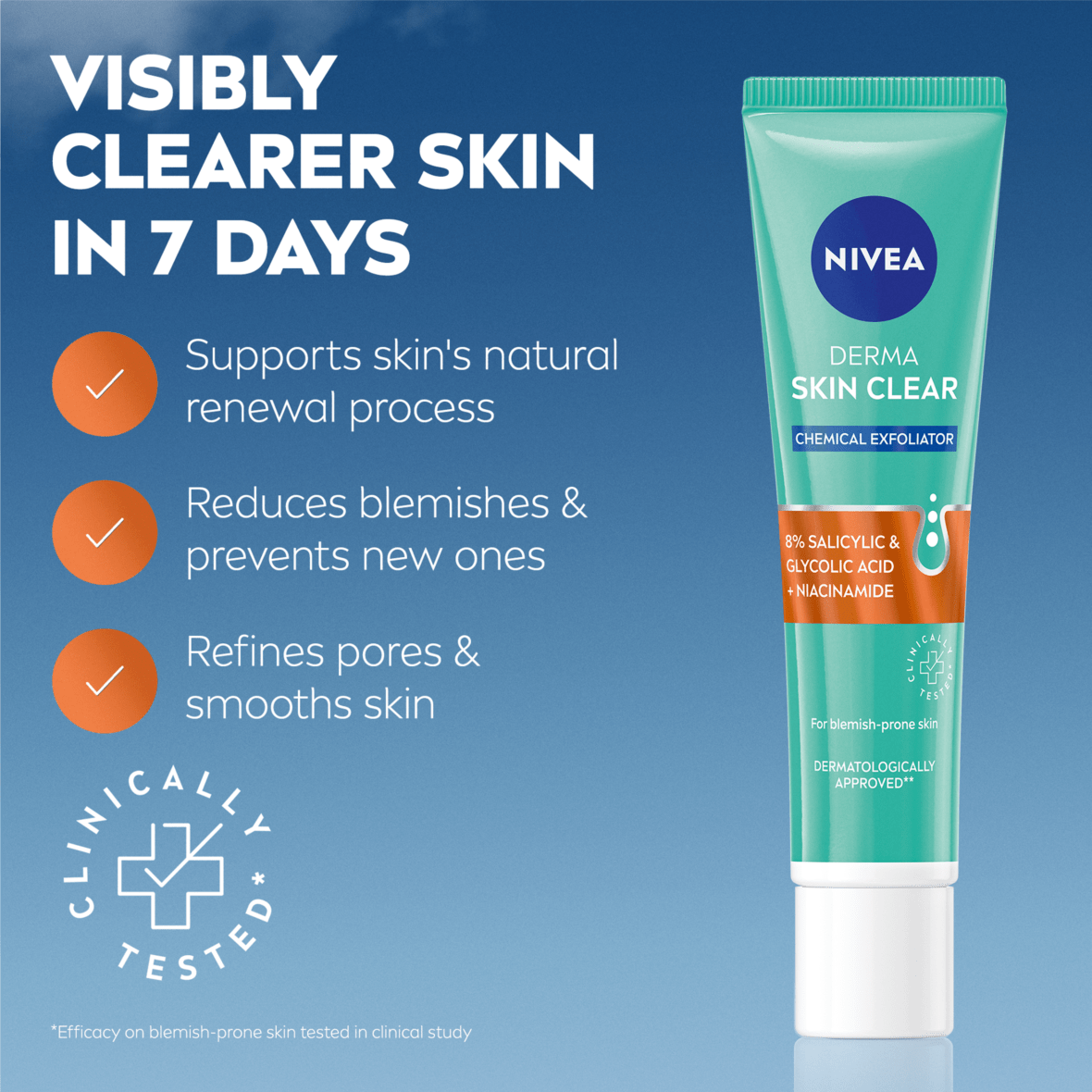 - Αποτελεσματικότητα σε επιδερμίδα με τάση για ακμή, δοκιμασμένο σε κλινική μελέτη