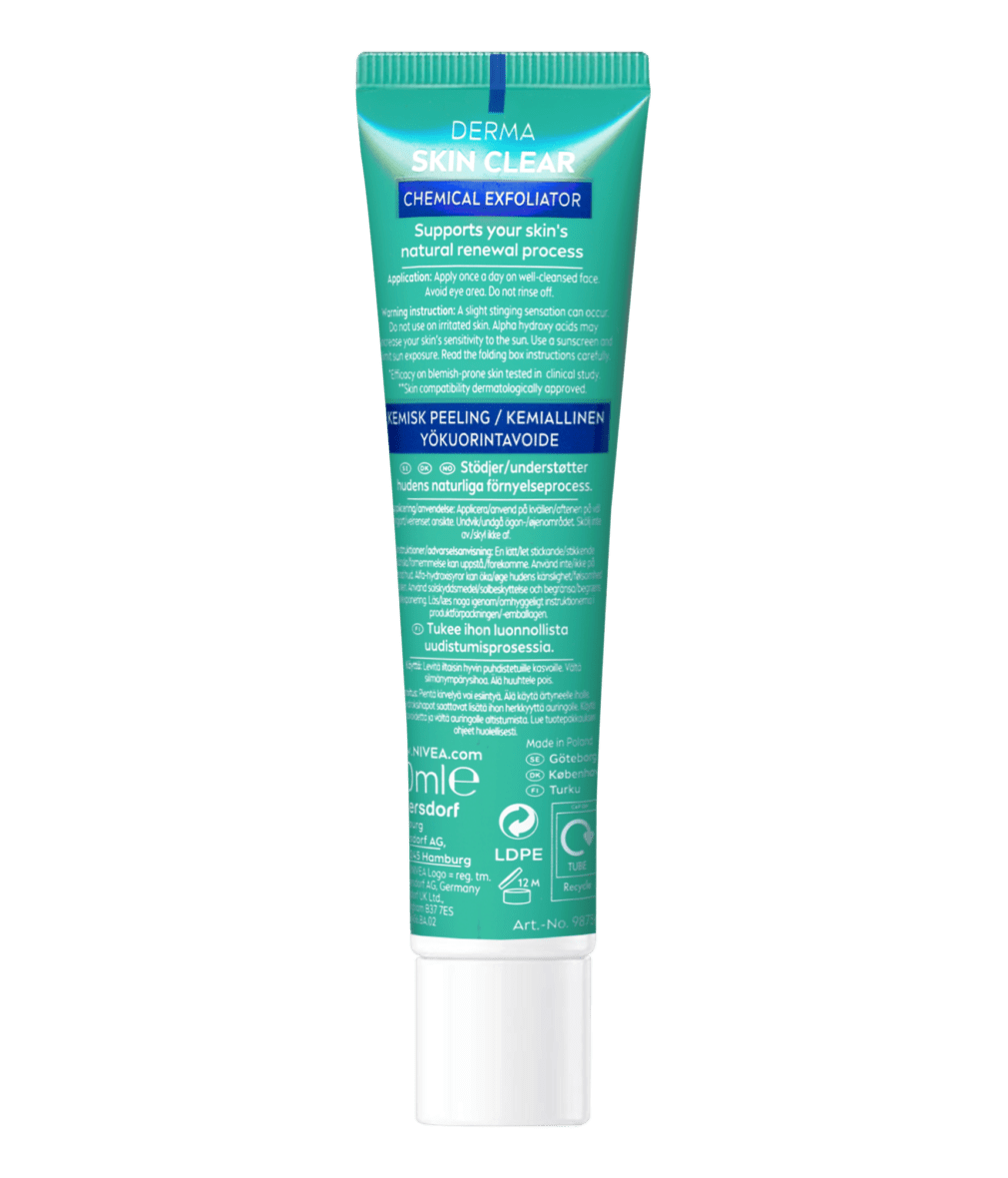 Μειώνει ορατά και αποτρέπει την επανεμφάνιση των ατελειών και υποστηρίζει τη φυσική διαδικασία ανανέωσης της επιδερμίδας. Σύνθεση με σαλικυλικό οξύ, γλυκολικό οξύ και νιασιναμίδη για δέρμα με τάση για ακμή.