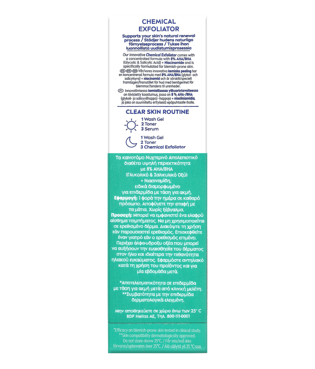 - Σύνθεση με 8% Σαλικυλικό & Γλυκολικό Οξύ + Νιασιναμίδη για επιδερμίδα με τάση για ακμή