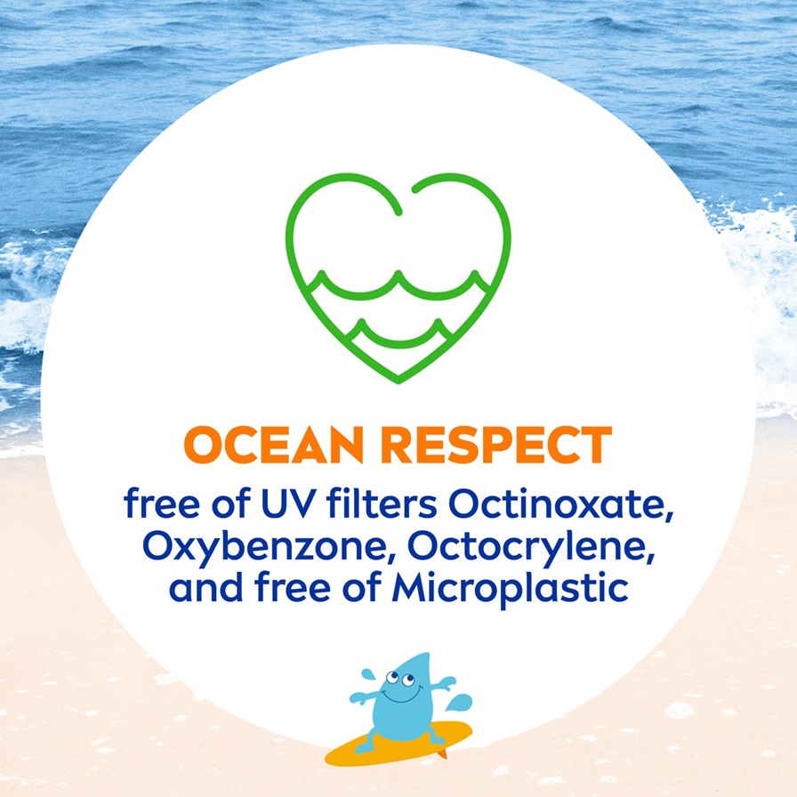 Προστασία UVA/UVBExtra αδιάβροχοΑνθεκτικό στον ιδρώταΠαιδιατρικά ελεγμένοΠεριποιητικόΒιοδιασπώμενη σύνθεσηΑνακυκλωμένο υλικόΠροστασία UVA & UVBSun protection