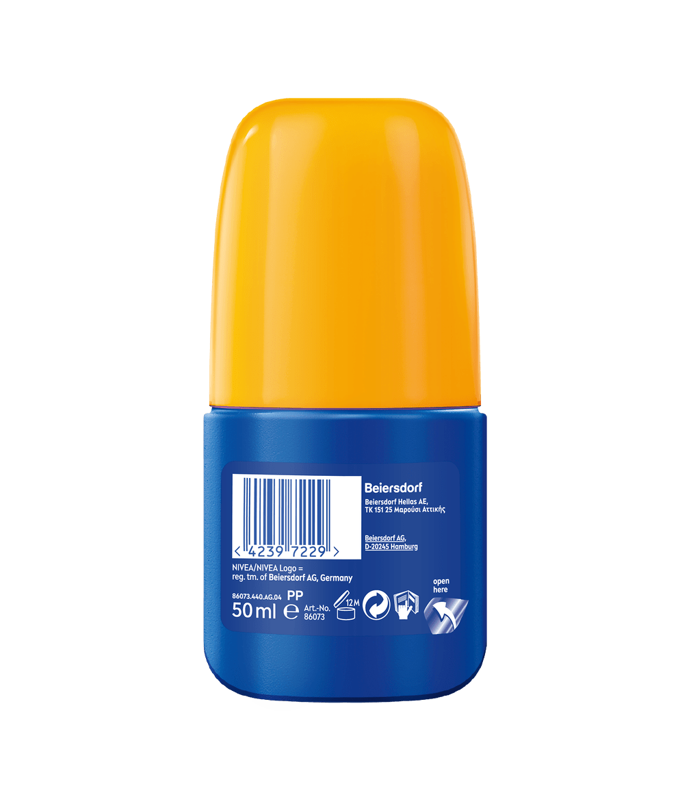 Αξιόπιστη 5σε1 αντηλιακή UV προστασία προσαρμοσμένη στις ανάγκες της ευαίσθητης παιδικής επιδερμίδας. Άμεση προστασία UVA/UVB με εξαιρετικά ανθεκτική στο νερό σύνθεση. NIVEA SUN Kid's Roll-On SPF 50+, 50ml.