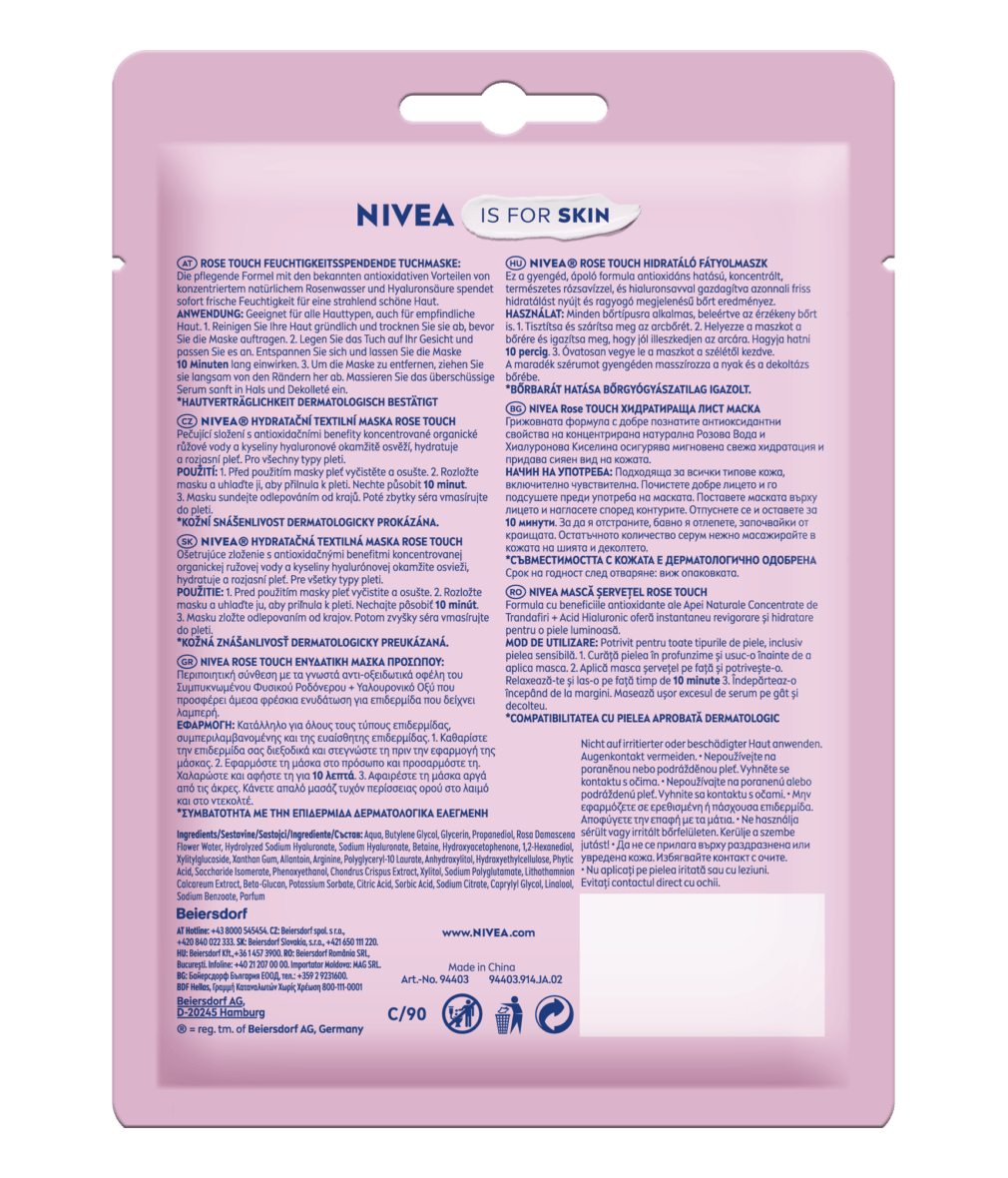 Χαρίστε στην επιδερμίδα σας τη φροντίδα που χρειάζεται χωρίς να αφιερώσετε πολύ χρόνο. Η NIVEA Υφασμάτινη Μάσκα Ενυδάτωσης Rose Touch είναι εμπλουτισμένη με συμπυκνωμένο φυσικό ροδόνερο και υαλουρονικό οξύ, συστατικά που προσφέρουν εντατική ενυδάτωση και λάμψη στην επιδερμίδα, σε μόλις 10 λέπτα μετά την εφαρμογή της μάσκας. Αποτέλεσμα: ενυδατωμένη, αναζωογονημένη και εξαιρετικά απαλή επιδερμίδα.