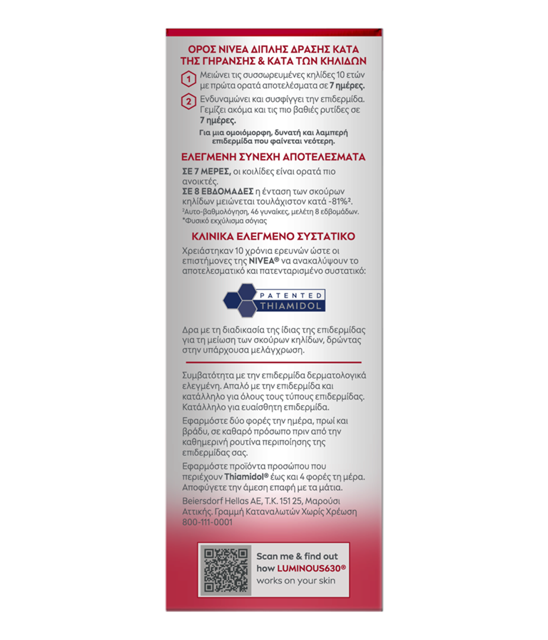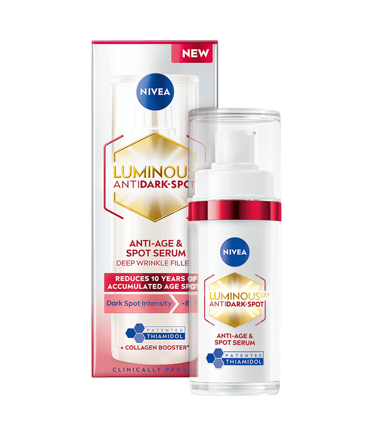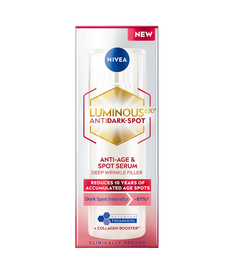 Μείωσε έως και 10 χρόνια σημαδιών γήρανσης με τον NIVEA Cellular Luminous630 Anti Age Ορό Κατά των Κηλίδων. Συσφίγγει, πυκνώνει και ενδυναμώνει τη δομή της επιδερμίδας. Γεμίζει ακόμη και τις βαθειές ρυτίδες σε 7 ημέρες.