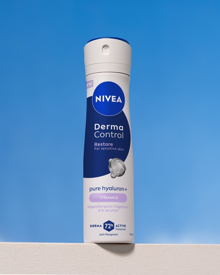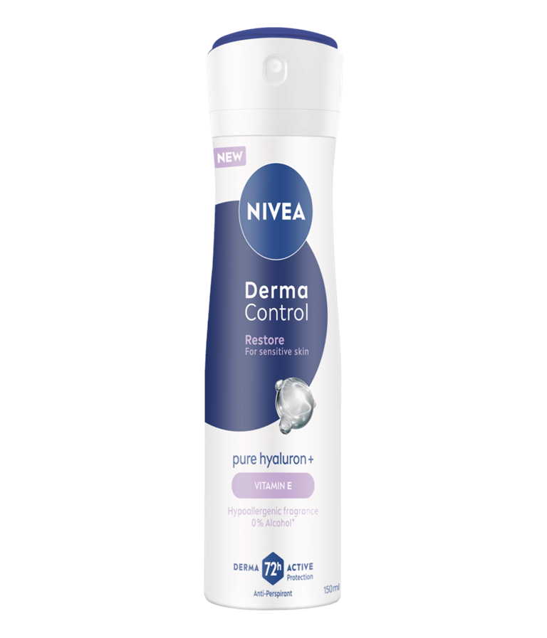 Η NIVEA Derma Control Restore, με Καθαρό Υαλουρονικό και Βιταμίνη Ε, καταπραΰνει την ερεθισμένη επιδερμίδα μετά το ξύρισμα. Προσφέρει 72h αντιιδρωτική προστασία από τον ιδρώτα & την κακοσμία, αφήνοντας τις μασχάλες σας πιο απαλές & όμορφες. Για ευαίσθητες επιδερμίδες με υποαλλεργικό άρωμα.