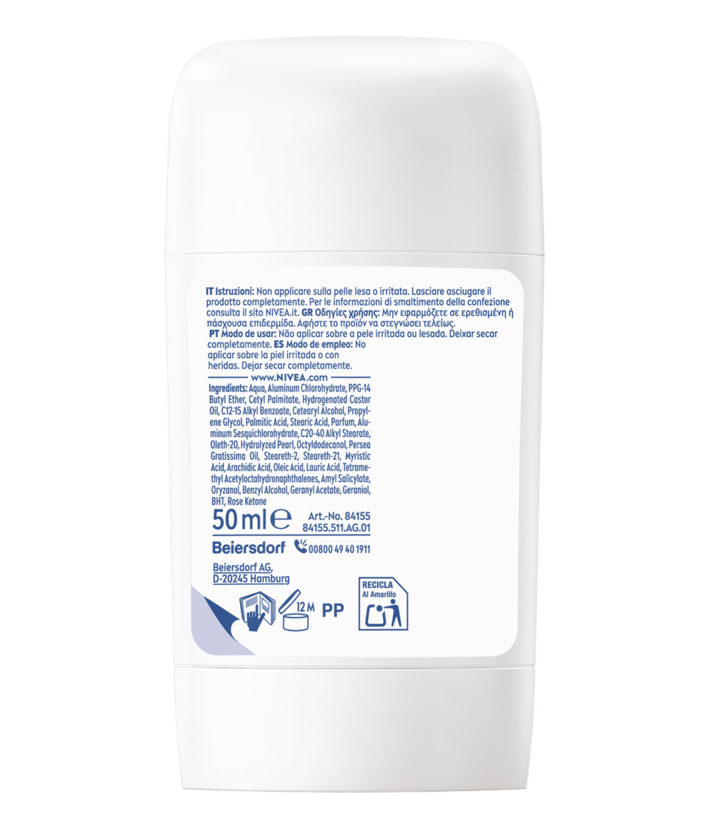 Το NIVEA PEARL & BEAUTY Anti-Perspirant Stick αναδεικνύει την ομορφιά της περιοχής της μασχάλης με φυσικό εκχύλισμα μαργαριταριού, που συμβάλλει στην ομοιόμορφη όψη της επιδερμίδας, και είναι εμπλουτισμένο με Έλαιο Αβοκάντο για απαλές, λείες και όμορφα περιποιημένες μασχάλες. Η Συμβατότητα με την επιδερμίδα είναι δερματολογικά ελεγμένη και οι συνθέσεις δεν περιέχουν αιθυλική αλκοόλη.