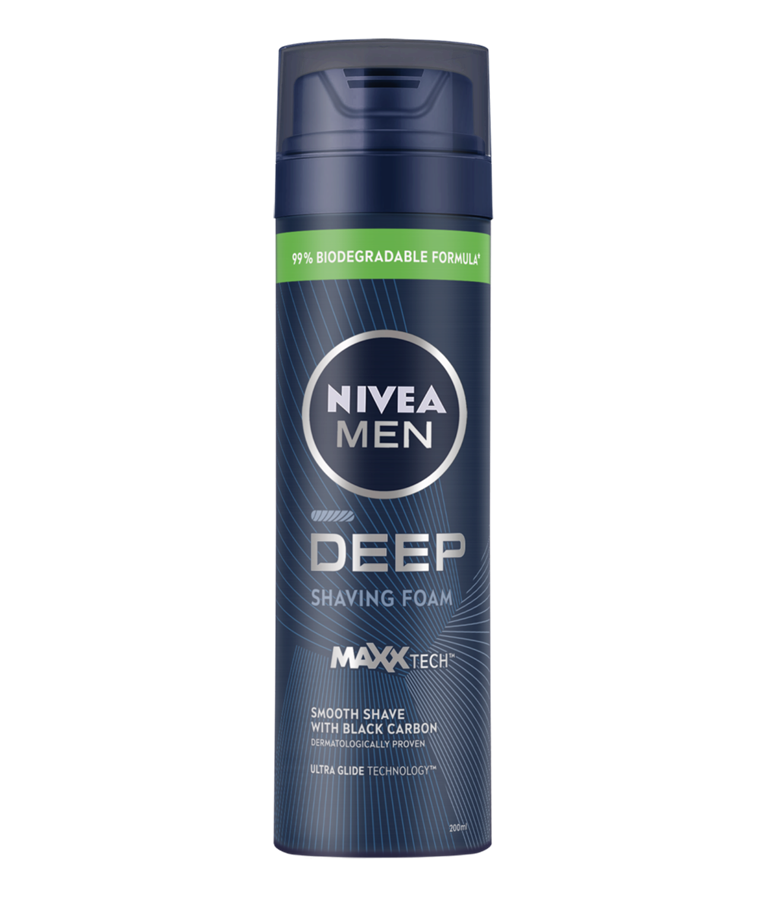 NIVEA Men Deep Shaving Foam Αυτός ο αφρός ξυρίσματος είναι ιδανικός για άνδρες που θέλουν ένα άνετο ξύρισμα με αίσθηση καθαρής επιδερμίδας. Η σύνθεσή του με Μαύρο Άνθρακα προετοιμάζει τις τρίχες του προσώπου σας και προστατεύει την επιδερμίδα σας από ερεθισμούς στο ξύρισμα | 200ml