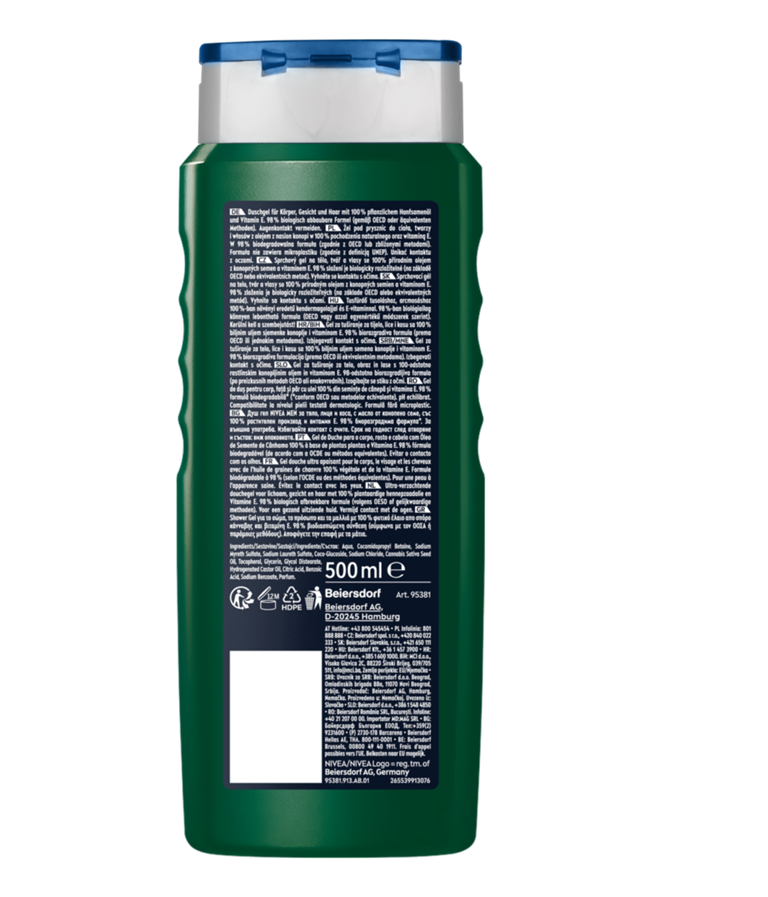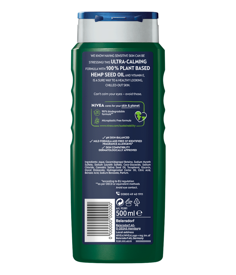 Showe Gel που μειώνει τα σημάδια του stress στην επιδερμίδα για ορατή υγιή επιδερμίδα, εμπλουτισμένο με 100% φυτικό έλαιο σπόρου κάνναβης και βιταμίνη Ε
