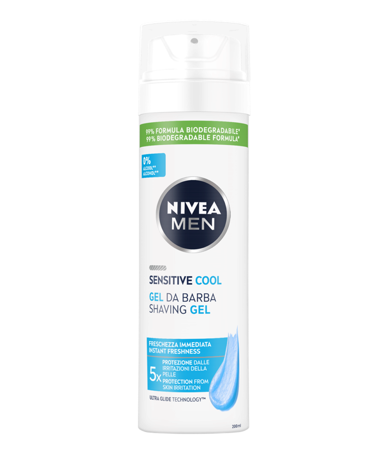 NIVEA Men Sensitive Cool Shaving Gel. Το ξύρισμα ερεθίζει την επιδερμίδα σας; Αποκτήστε άμεση προστασία με αίσθηση δροσιάς. Αυτό το τζελ ξυρίσματος προστατεύει την επιδερμίδα σας από ερεθισμούς όπως ξηρότητα, κάψιμο, ερυθρότητα ή μικροκοψίματα | 200ml