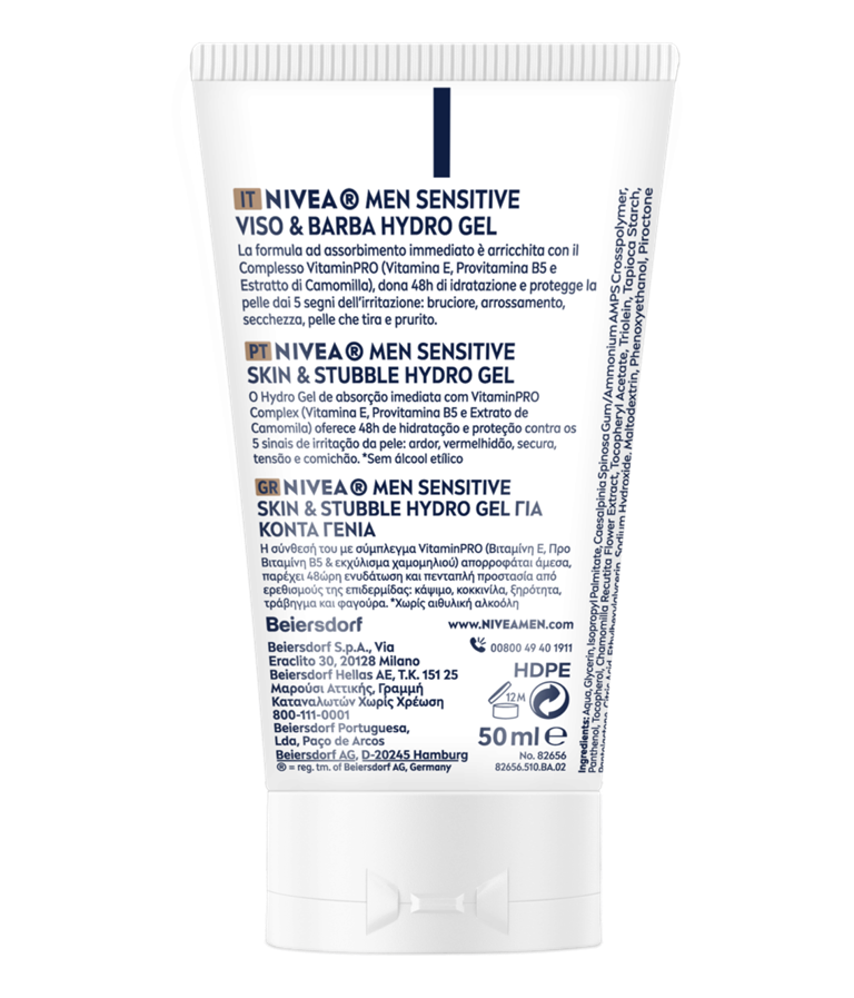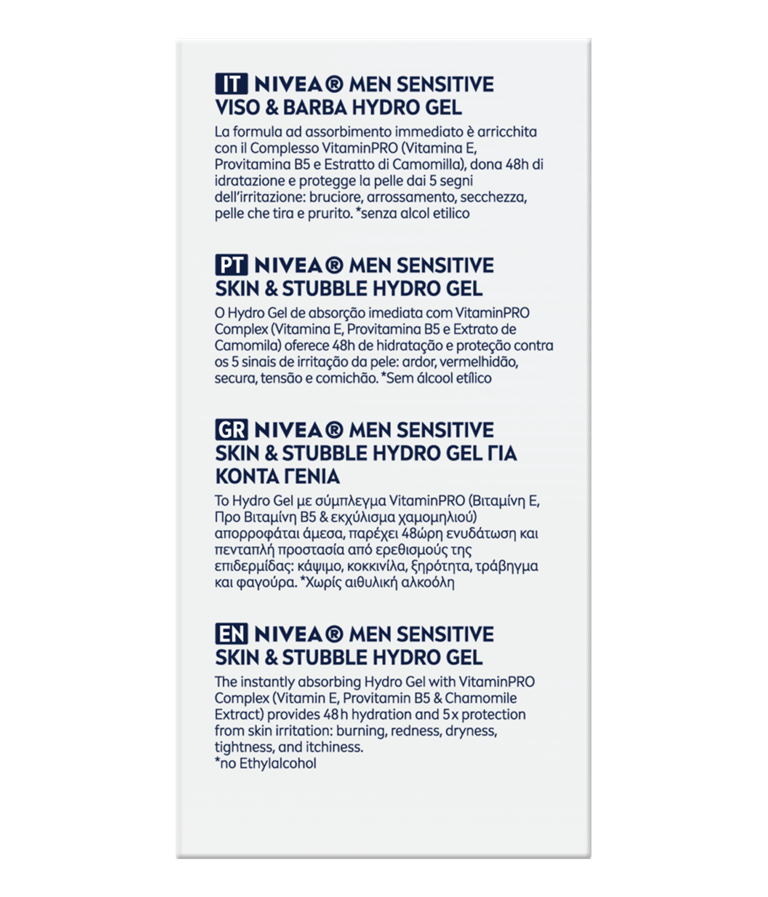 NIVEA MEN Sensitive Κρέμα Gel Για Πρόσωπο & Κοντά Γένια, Με μη λιπαρή σύνθεση που απορροφάται γρήγορα, προσφέρει 48ωρη ενυδάτωση και άμεση ανακούφιση για την ευαίσθητη επιδερμίδα! Δοκίμασε σήμερα τη NIVEA Men Sensitive Skin & Stubble Κρέμα Gel.