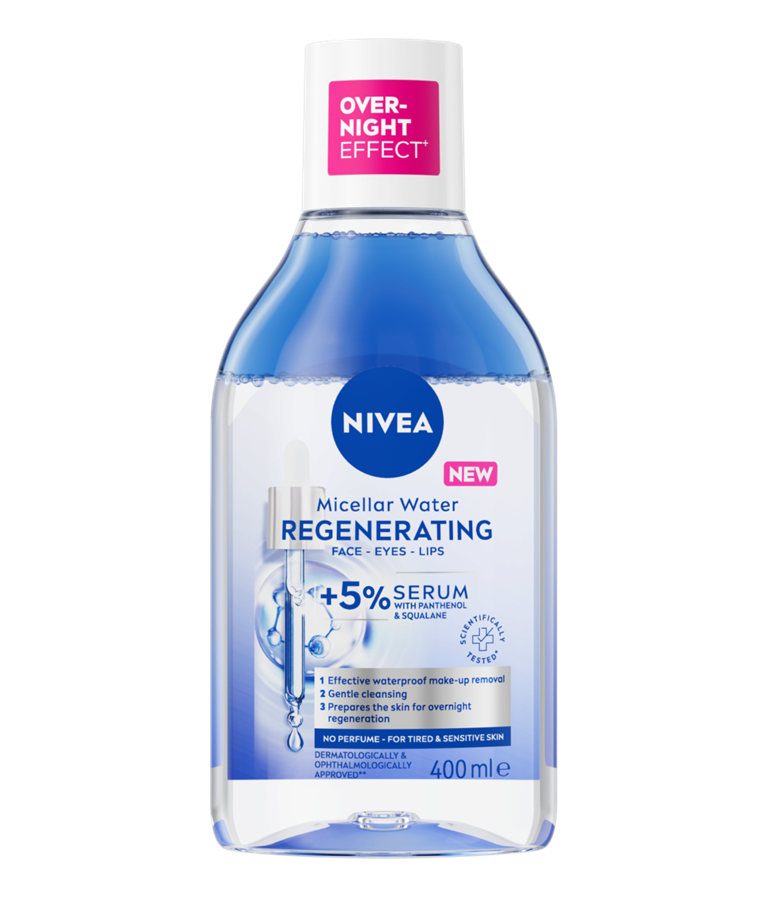 Το NIVEA Νερό Καθαρισμού Αναζωογόνησης, για κουρασμένη και ευαίσθητη επιδερμίδα, είναι εμποτισμένο με 5% Ορό, δεξπανθενόλη & Σκουαλάνι και αφαιρεί αποτελεσματικά το αδιάβροχο μακιγιάζ και τους ρύπους με λίγες μόνο κινήσεις. Ενυδατώνει και αναπλάθει, προετοιμάζοντας την επιδερμίδα για αναζωογόνηση.