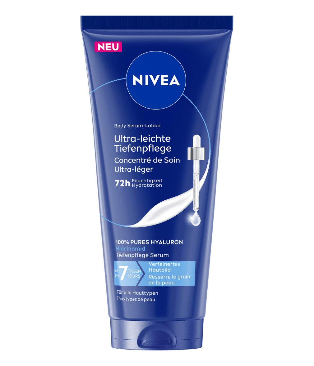 Αποκτήστε ορατά πιο λεία & ομοιόμορφη επιδερμίδα σε μόλις 7 ημέρες με τη νέα λοσιόν σώματος NIVEA Skin Refining Body Serum Lotion. Μια εξαιρετικά ελαφριά σύνθεση που χαρίζει στην επιδερμίδα απαλότητα, ομοιόμορφη υφή, άμεση υγιή λάμψη και ενυδάτωση που διαρκεί 72 ώρες. Η σύνθεσή της είναι εμπλουτισμένη με 100% καθαρό υαλουρονικό οξύ, νιασιναμίδη και ορό βαθιάς θρέψης για ενυδάτωση που διαρκεί
