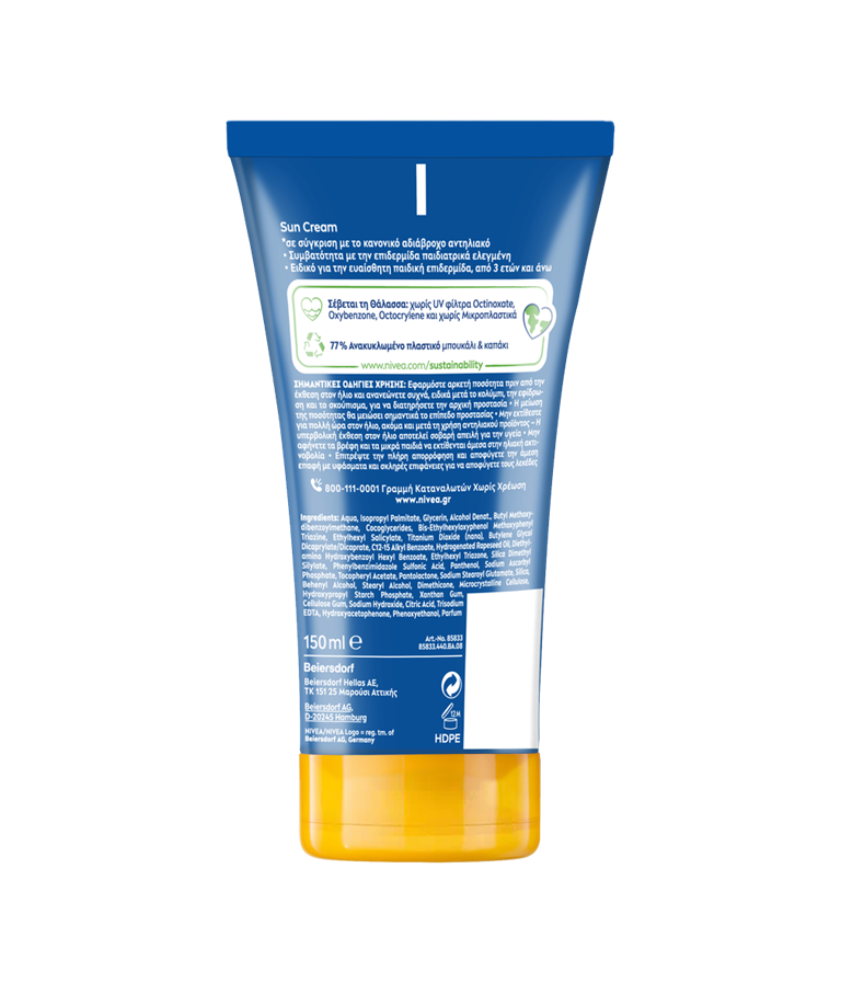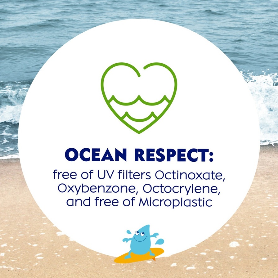 Προστασία UVA/UVBExtra αδιάβροχοΑνθεκτικό στον ιδρώταΠαιδιατρικά ελεγμένοΠεριποιητικόΒιοδιασπώμενη σύνθεσηΑνακυκλωμένο υλικόΠροστασία UVA & UVBSun protection