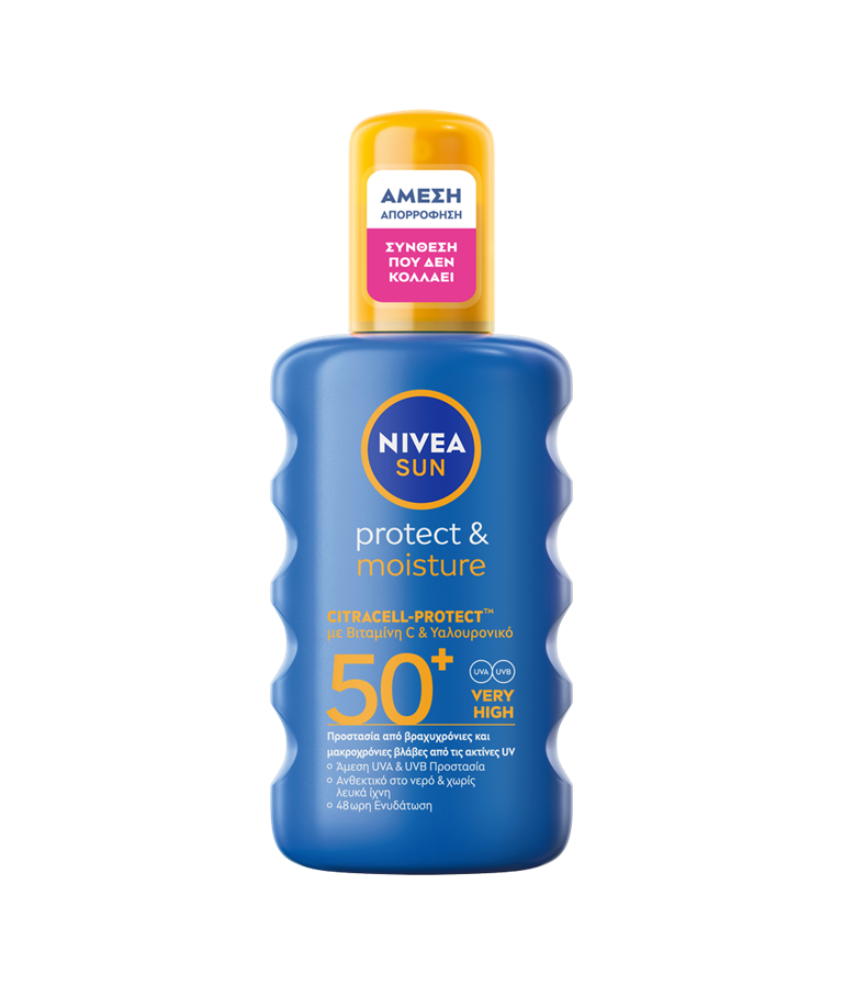 Αξιόπιστη προστασία από τις βραχυπρόθεσμες και μακροπρόθεσμες βλάβες της υπεριώδους ακτινοβολίας με τη νέα, γρήγορα απορροφητική σύνθεση CITRACELL-PROTECT™: NIVEA SUN Protect & Moisture Pump Spray