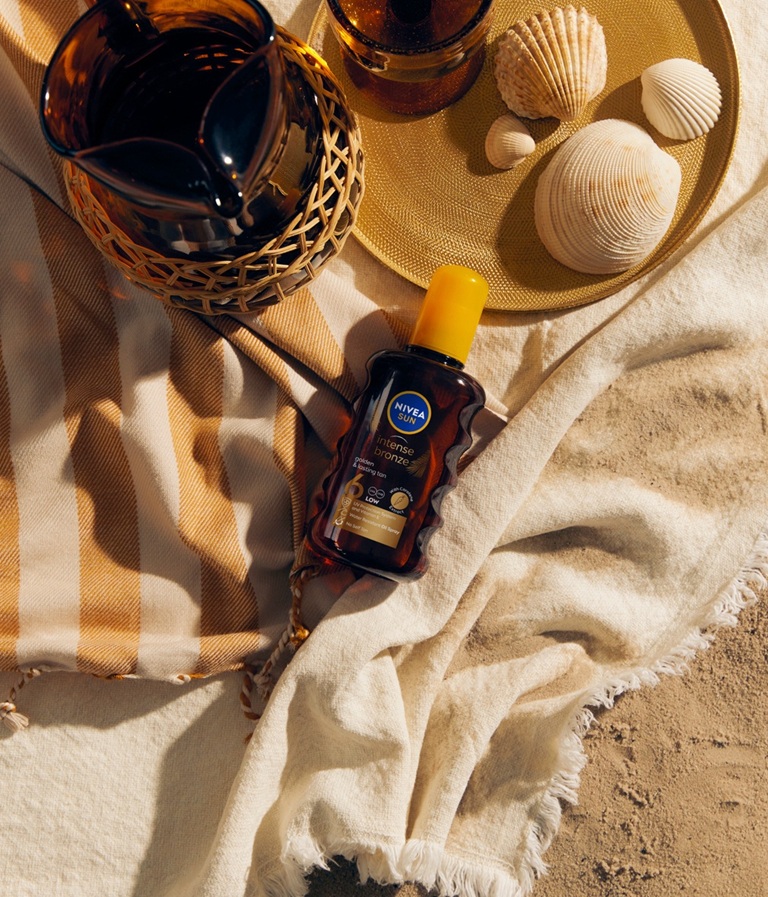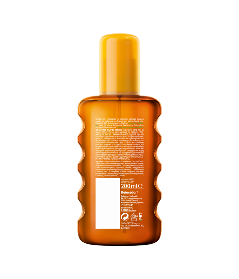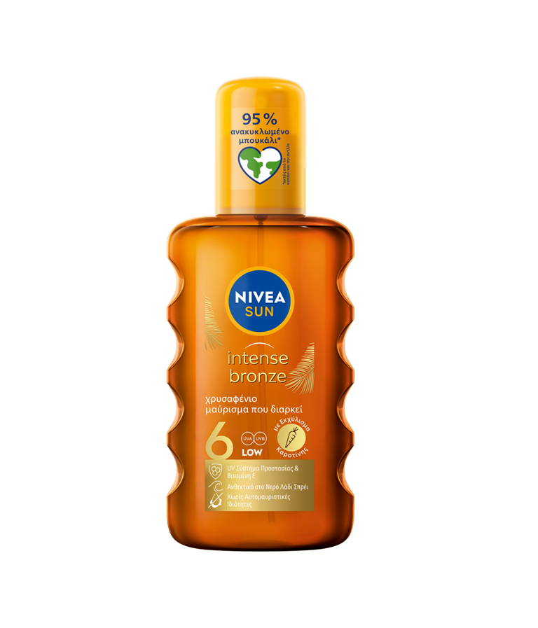 Αντηλιακή προστασία για έντονο και όμορφο μαύρισμα με εκχύλισμα καροτίνης και χωρίς αυτομαύρισμα. Σ'υνθεση που σέβεατι τη θάλασσα. NVEA SUN Intense Bronze Oil Spray.