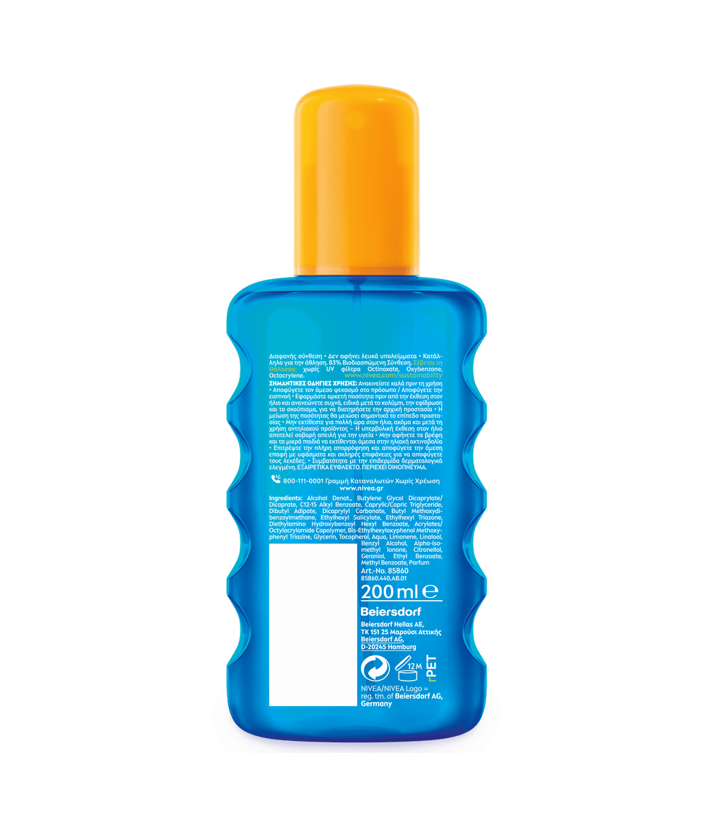 Άμεση προστασία από τα ηλιακά εγκαύματα που είναι διάφανο σε όλες τις αποχρώσεις επιδερμίδας: NIVEA SUN Protect & Dry Touch Invisible Spray.