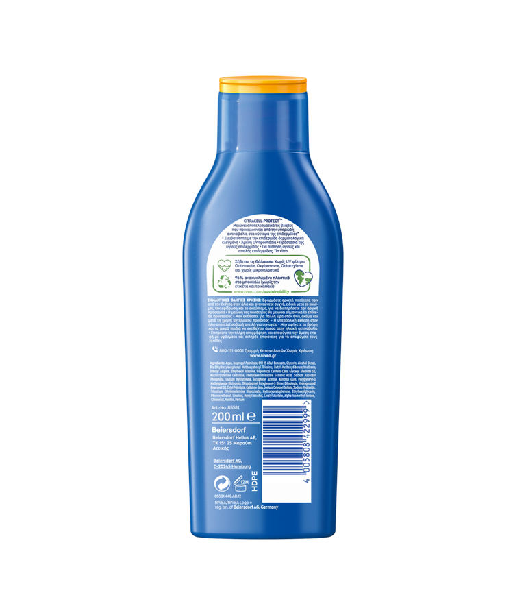 Αξιόπιστη προστασία από τις βραχυπρόθεσμες και μακροπρόθεσμες βλάβες της υπεριώδους ακτινοβολίας με τη νέα, γρήγορα απορροφητική σύνθεση CITRACELL-PROTECT™: NIVEA SUN Protect & Moisture Lotion
