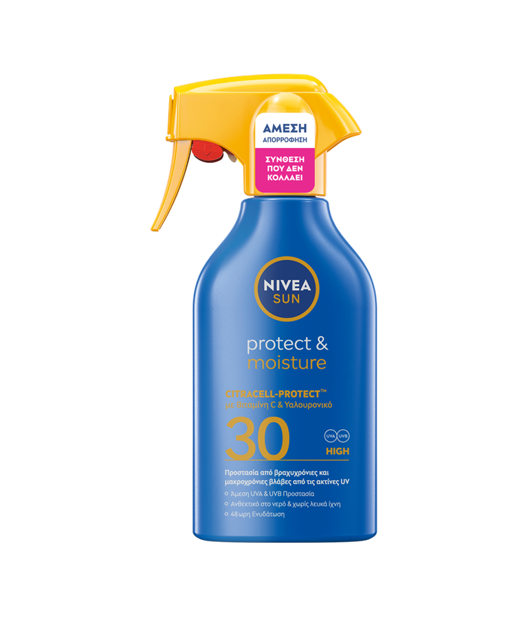 Αξιόπιστη προστασία από τις βραχυπρόθεσμες και μακροπρόθεσμες βλάβες της υπεριώδους ακτινοβολίας με τη νέα, γρήγορα απορροφητική σύνθεση CITRACELL-PROTECT™: NIVEA SUN Protect & Moisture Trigger Spray
