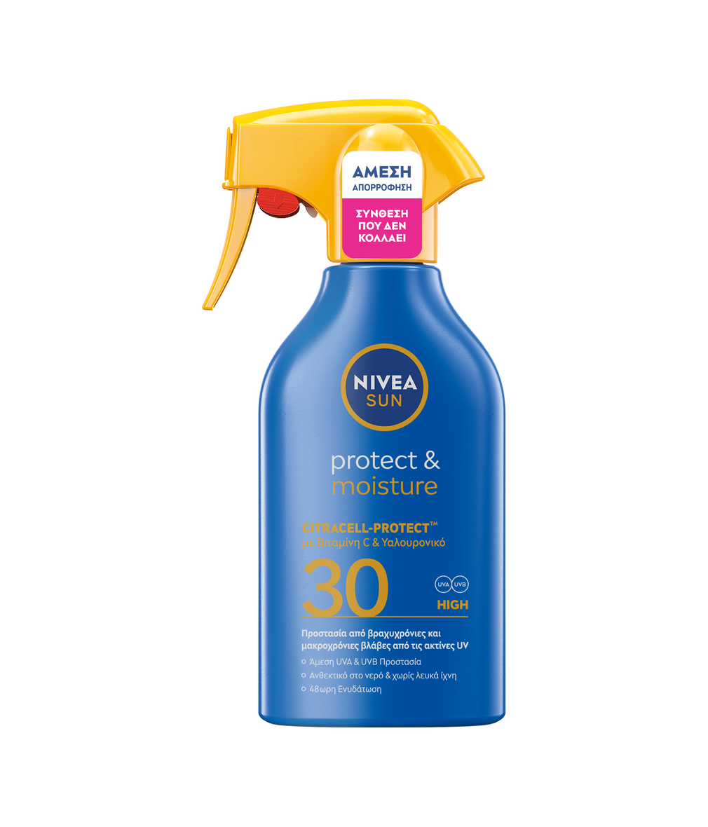 Αξιόπιστη προστασία από τις βραχυπρόθεσμες και μακροπρόθεσμες βλάβες της υπεριώδους ακτινοβολίας με τη νέα, γρήγορα απορροφητική σύνθεση CITRACELL-PROTECT™: NIVEA SUN Protect & Moisture Trigger Spray