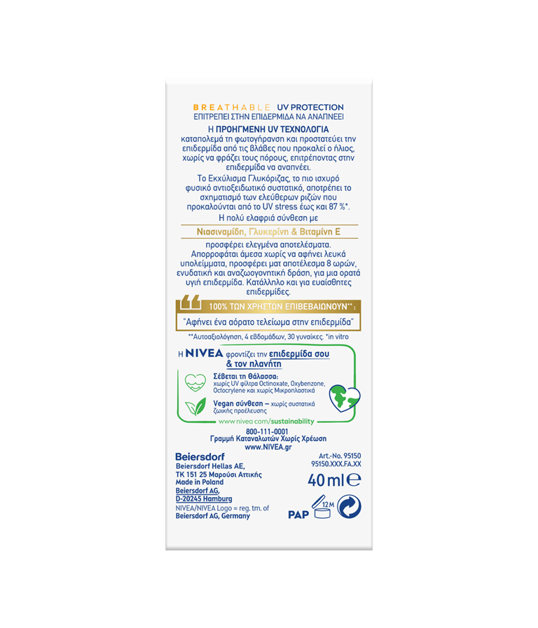 Προστασία UVA/UVBΑεροδιαπερατό Δεν κλείνει τους πόρουςΔιάφανοΚαθημερινή Χρήση