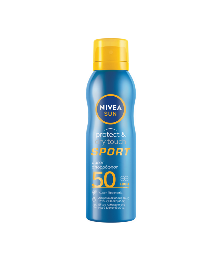 Άμεση προστασία από τα ηλιακά εγκαύματα που είναι διάφανο σε όλες τις αποχρώσεις επιδερμίδας: NIVEA SUN Protect & Dry Touch SPORT Refreshing Mist